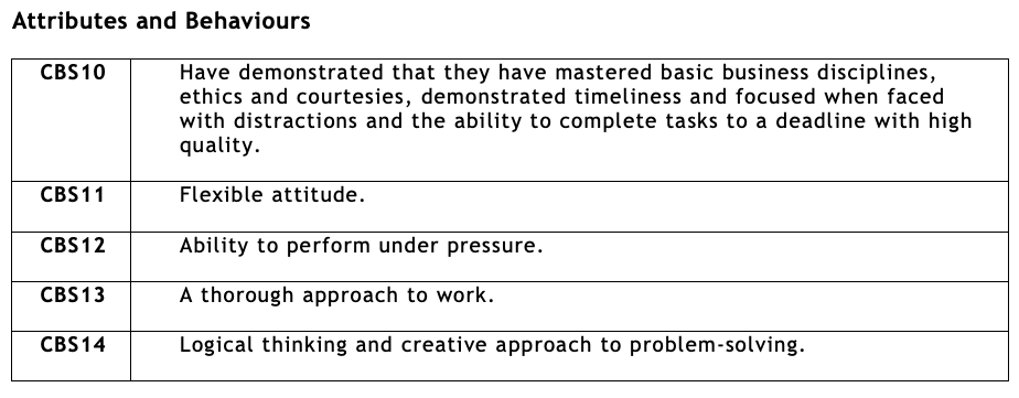 Knowledge, Skills and Behaviours (KSB) codes and criteria list