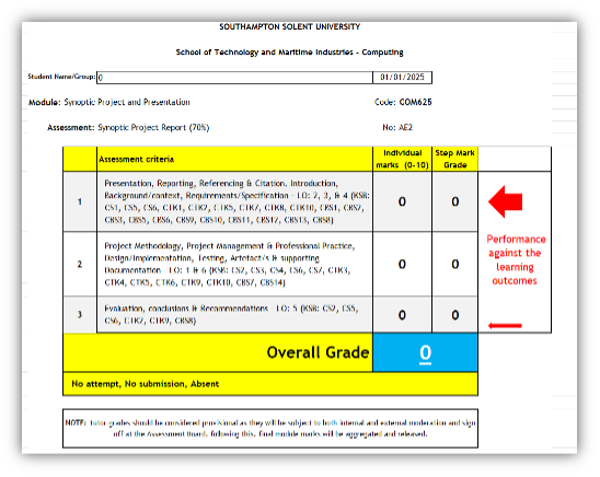 The Solent support tutor will also have read the report and worked out provisional grading and feedback.