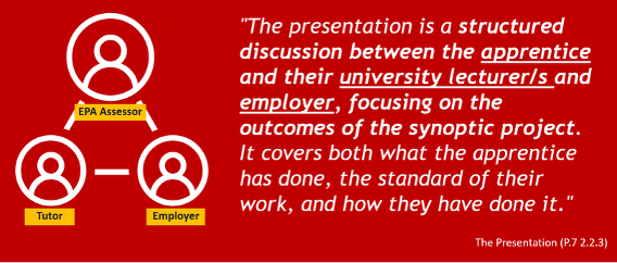 Apprentices will deliver a 25–30-minute presentation on their Synoptic Project.