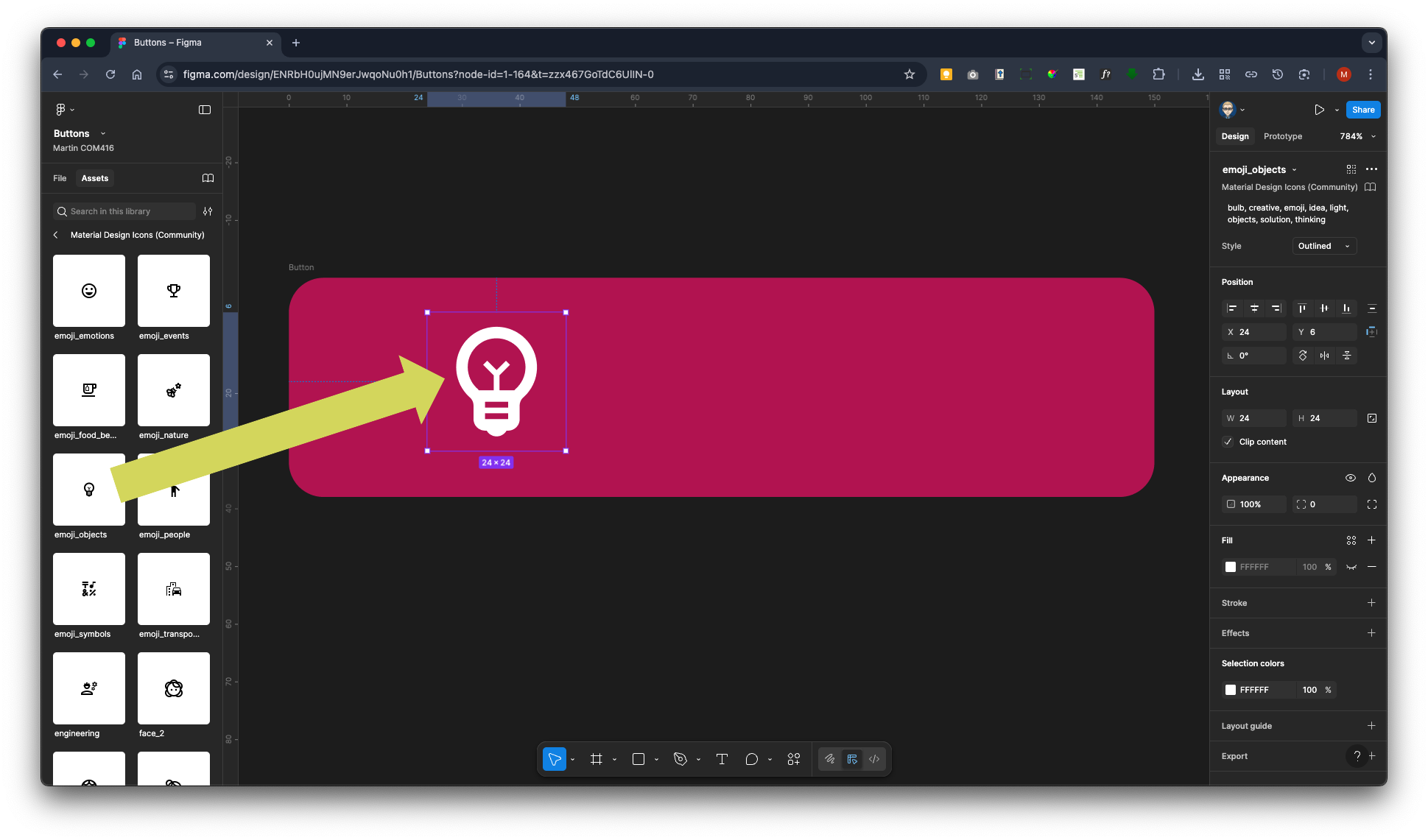 - Select the icon inside the Button frame (you may need to drill down in the layers panel).